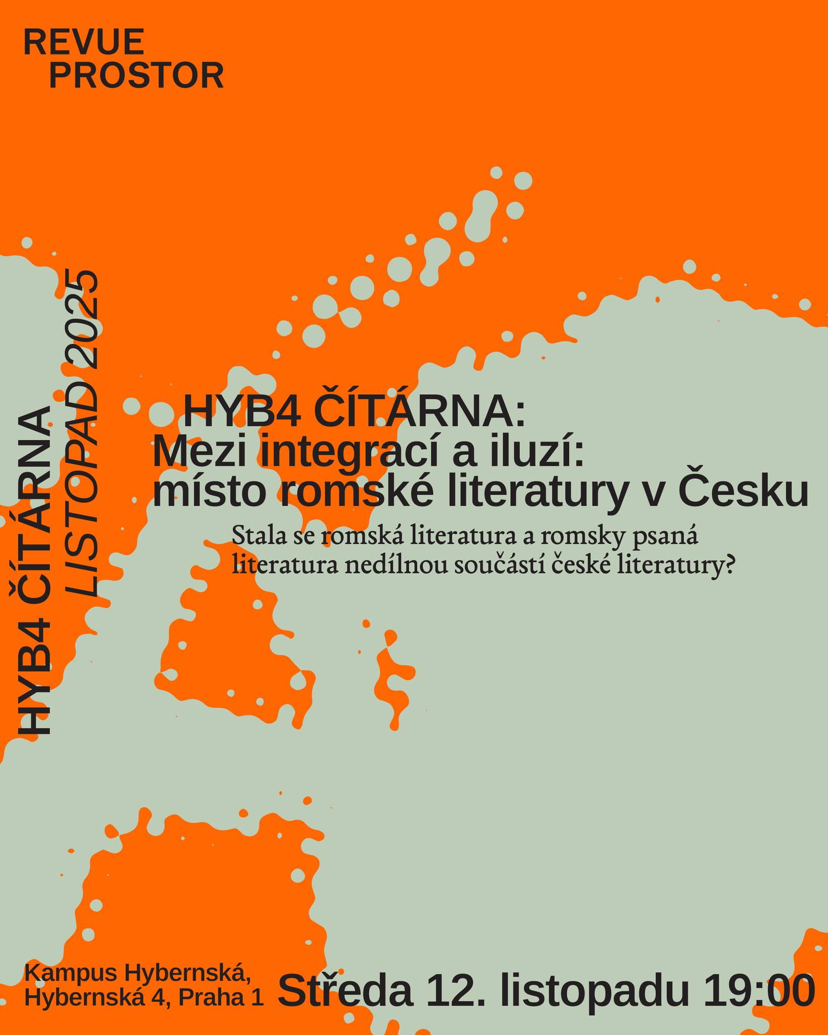 Už ve středu v 19 hodin se s námi můžete setkat v prostoru C.0 čítárna v Kampusu Hybernská! Pod taktovkou Revue Prostor tu proběhne další HYB4 Čítárna. Řeč bude o tom, jestli je romská a romsky psaná literatura už doopravdy součástí české literatury, nebo jestli je to zatím zbožné přání. Proč romskou literaturu čteme? Opravdu nás zajímá, nebo nám to jen přijde cool?